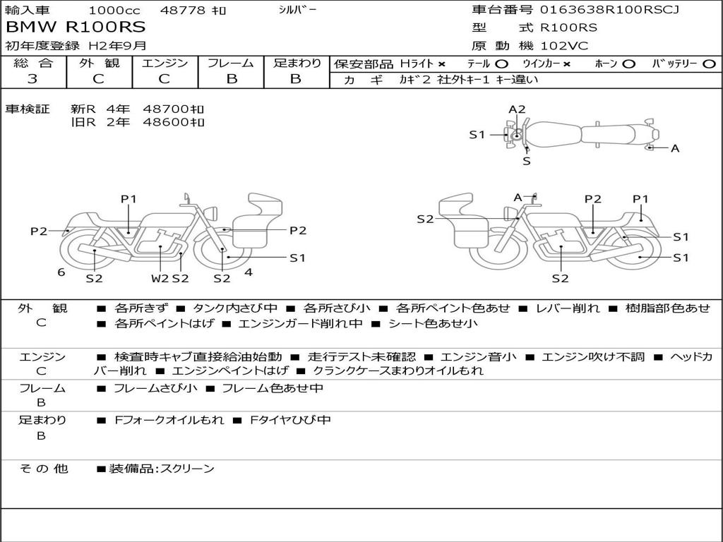 | Номер рамы / VIN | 0163638R100RSCJ |