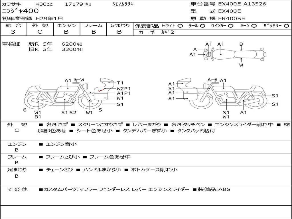 | Номер рамы / VIN | EX400E-A13526 |