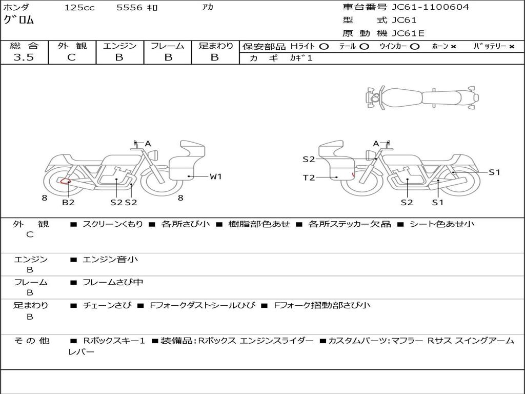 | Номер рамы / VIN | JC61-1100604 |