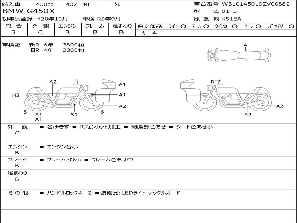 | Номер рамы / VIN | WB10145019ZV00882 |
