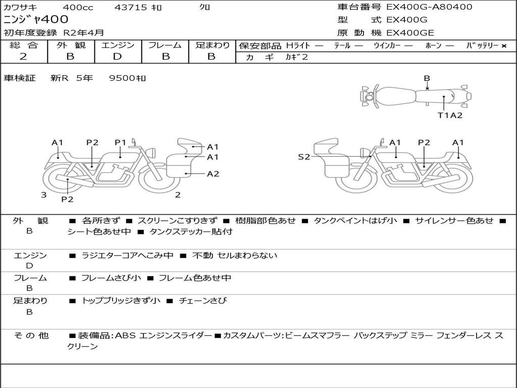 | Номер рамы / VIN | EX400G-A80400 |