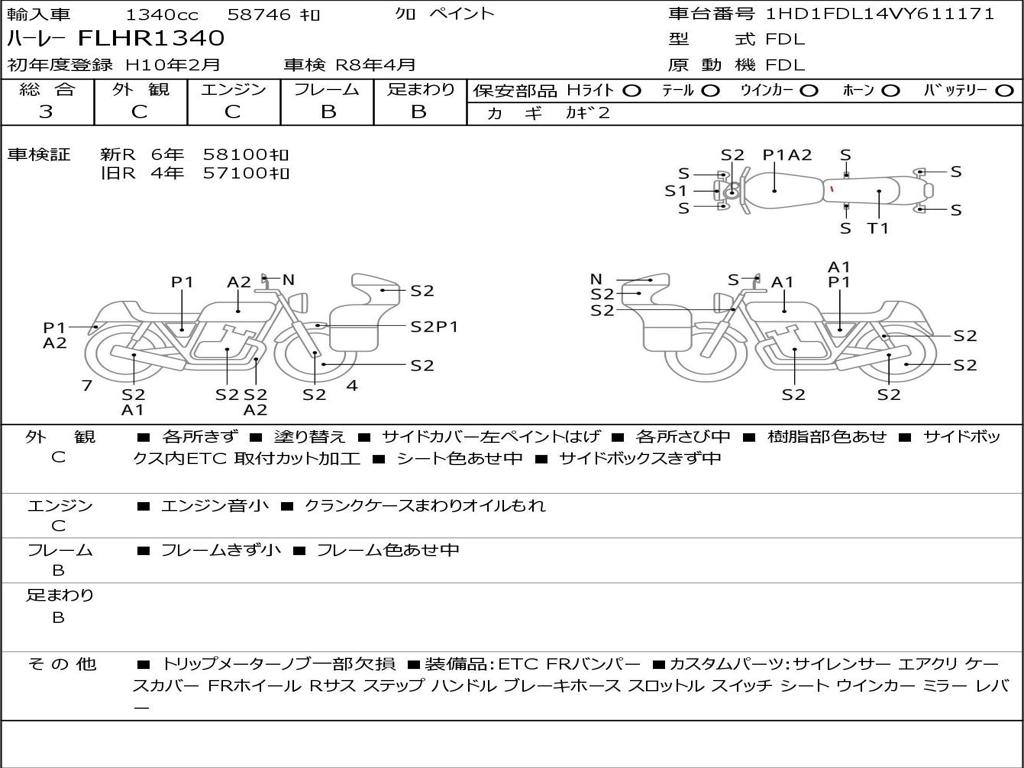 | Номер рамы / VIN | 1HD1FDL14VY611171 |