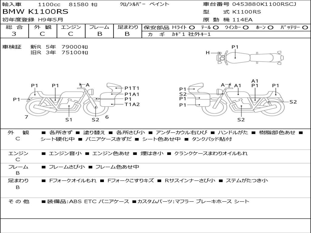 | Номер рамы / VIN | 0453880K1100RSCJ |