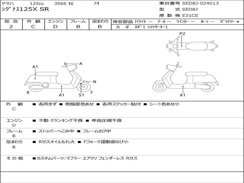 | Номер рамы / VIN | SED8J-024013 |