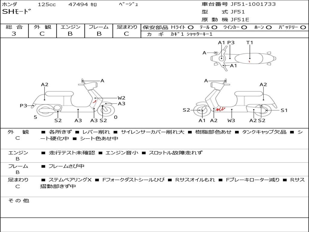 | Номер рамы / VIN | JF51-1001733 |