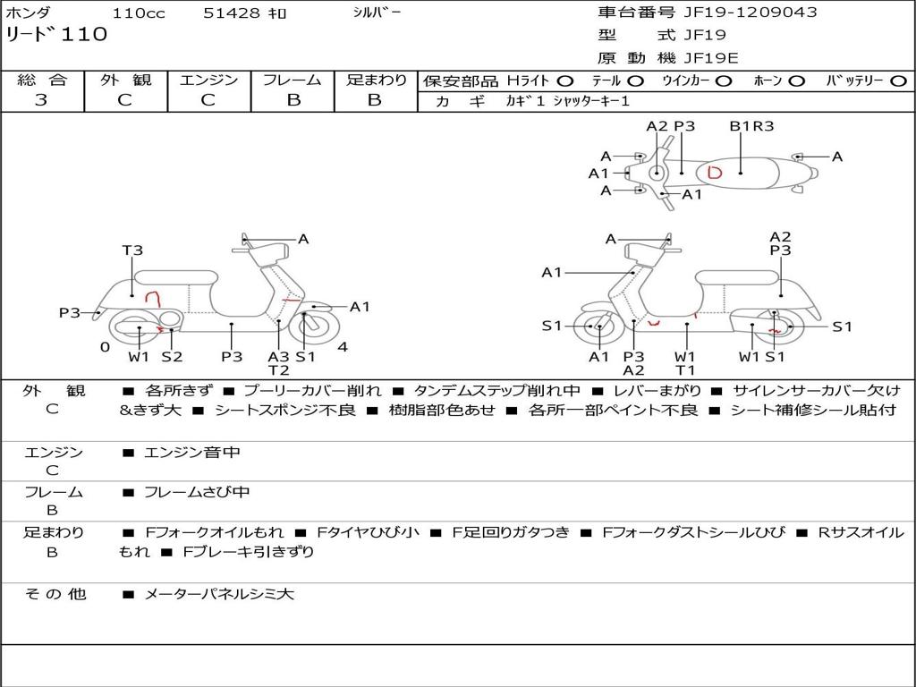 | Номер рамы / VIN | JF19-1209043 |
