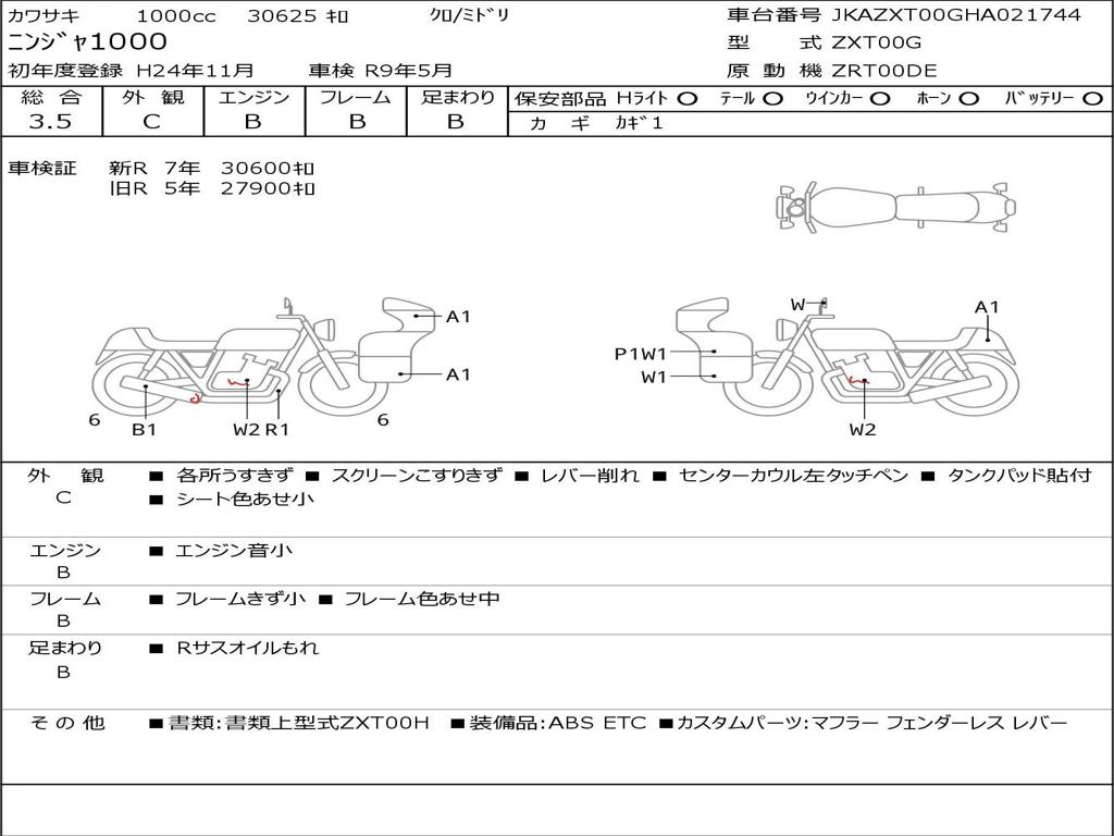 Номер рамы / VIN | JKAZXT00GHA021744 |