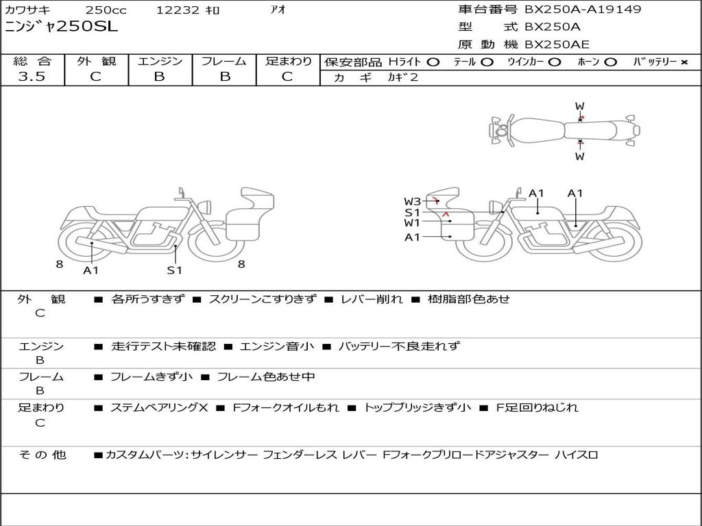 Номер рамы / VIN | BX250A-A19149 |