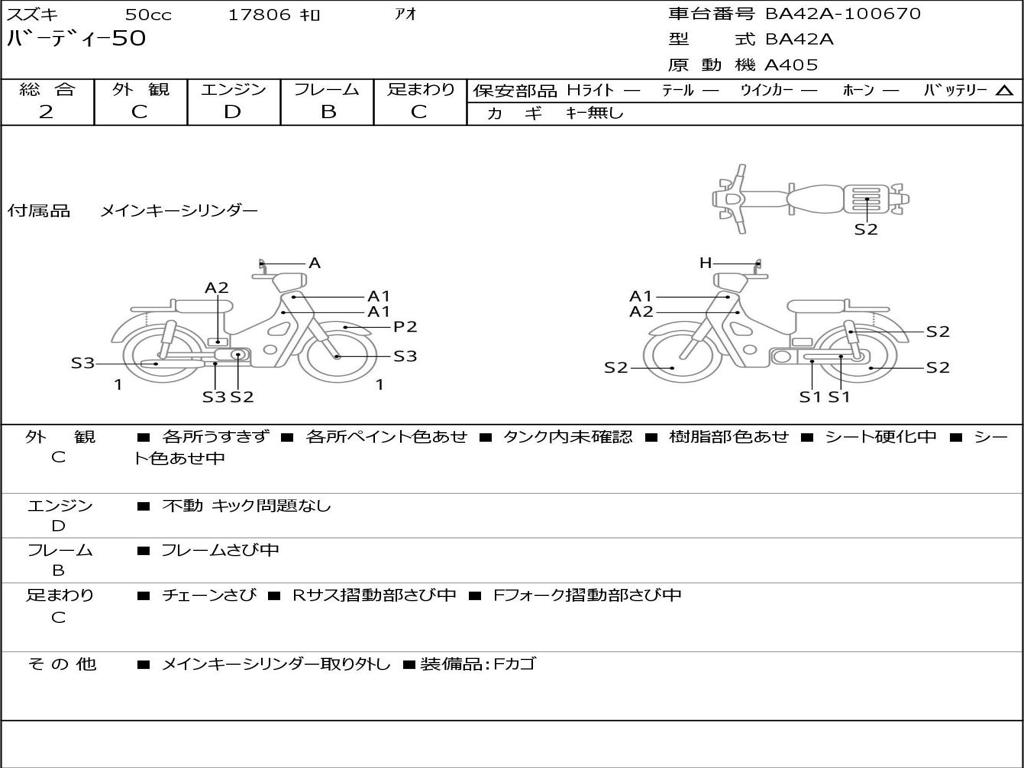 | Номер рамы / VIN | BA42A-100670 |