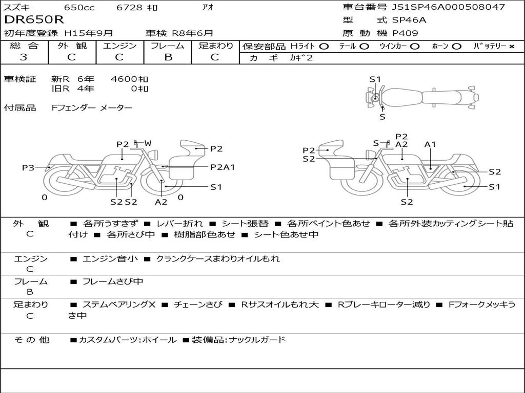 | Номер рамы / VIN | JS1SP46A000508047 |