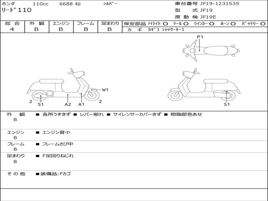 | Номер рамы / VIN | JF19-1231535 |