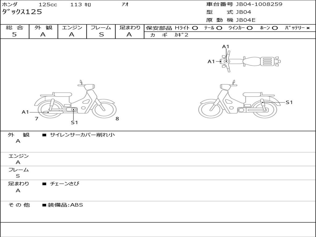 | Номер рамы / VIN | JB04-1008259 |