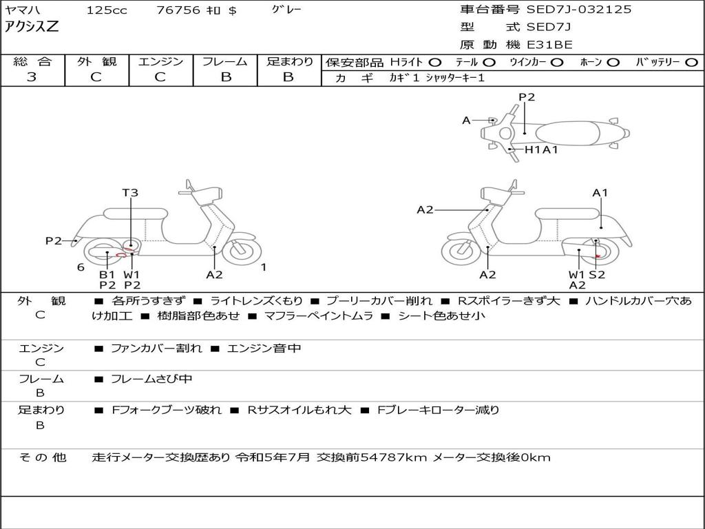 | Номер рамы / VIN | SED7J-032125 |