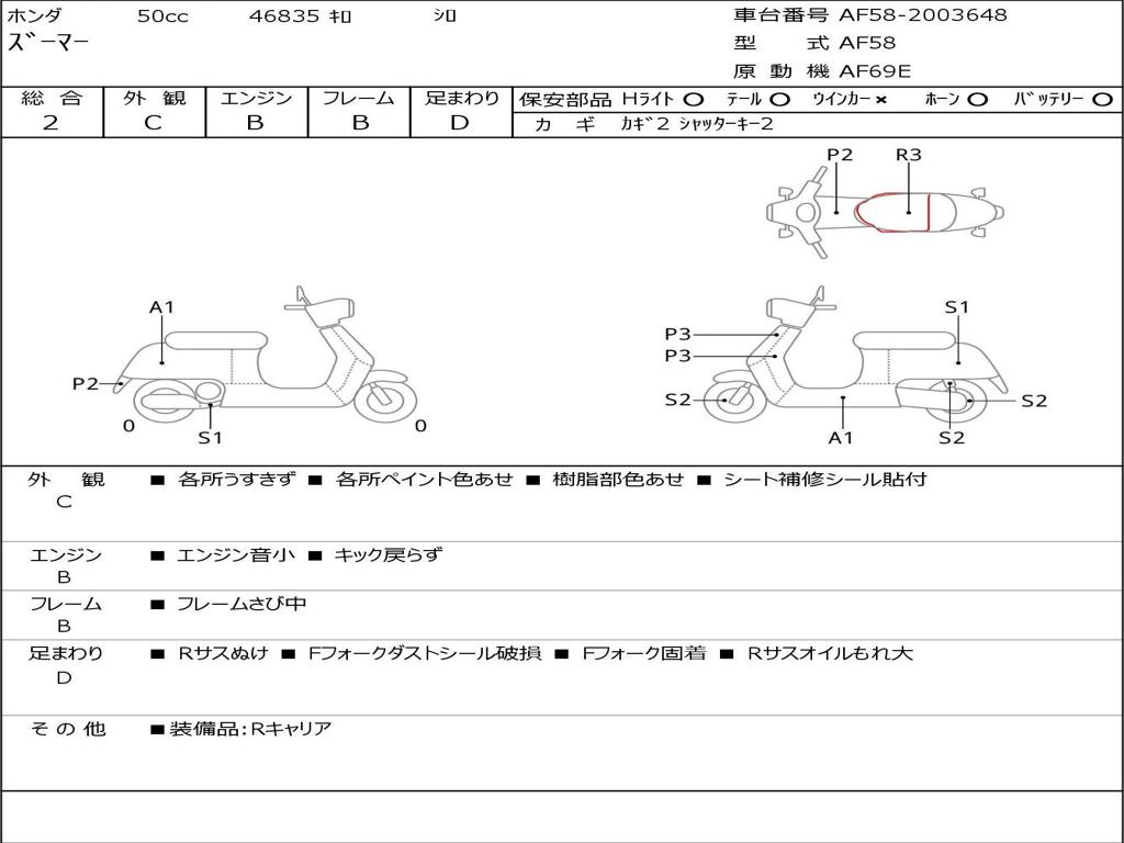 | Номер рамы / VIN | AF58-2003648 |