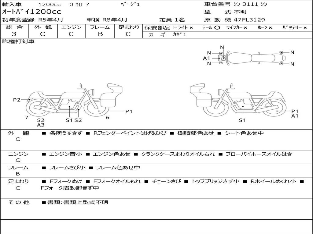 | Номер рамы / VIN | シン423111シン |