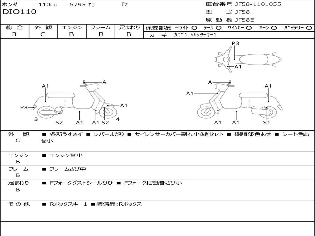 | Номер рамы / VIN | JF58-1101055 |