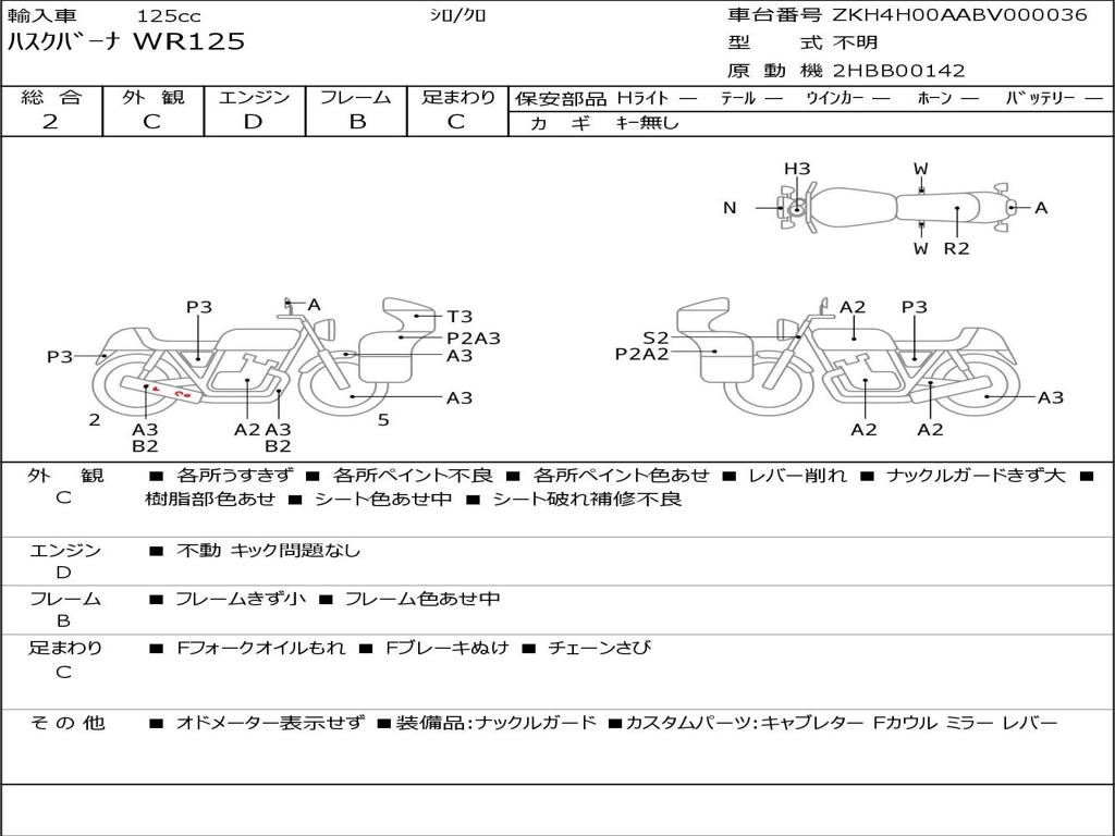 | Номер рамы / VIN | ZKH4H00AABV000036 |