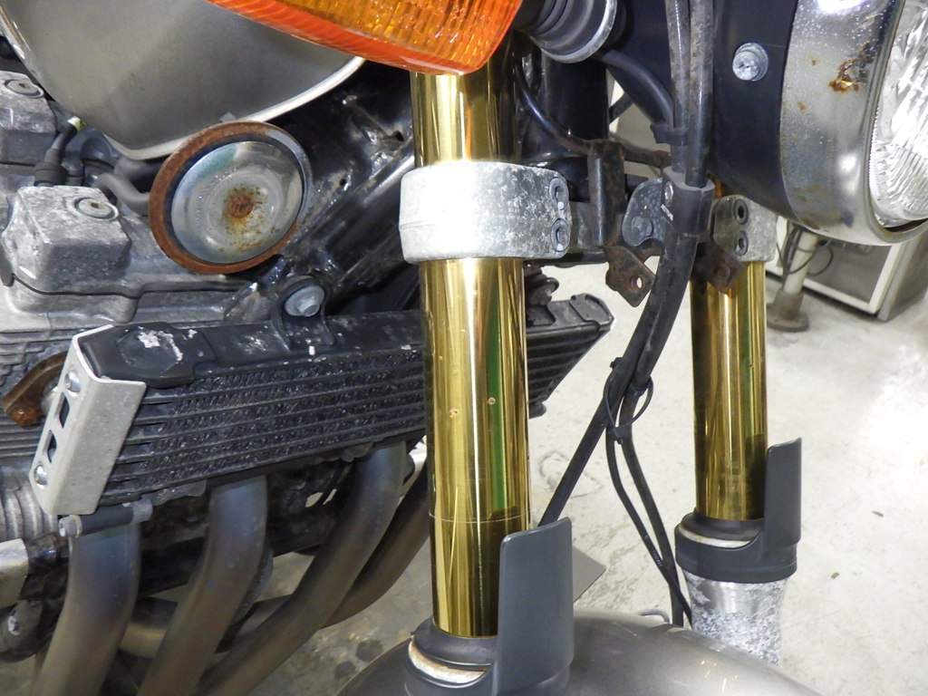 | внешняя часть вилки | следы коррозии <много>, потек масла, неисправен сальник |