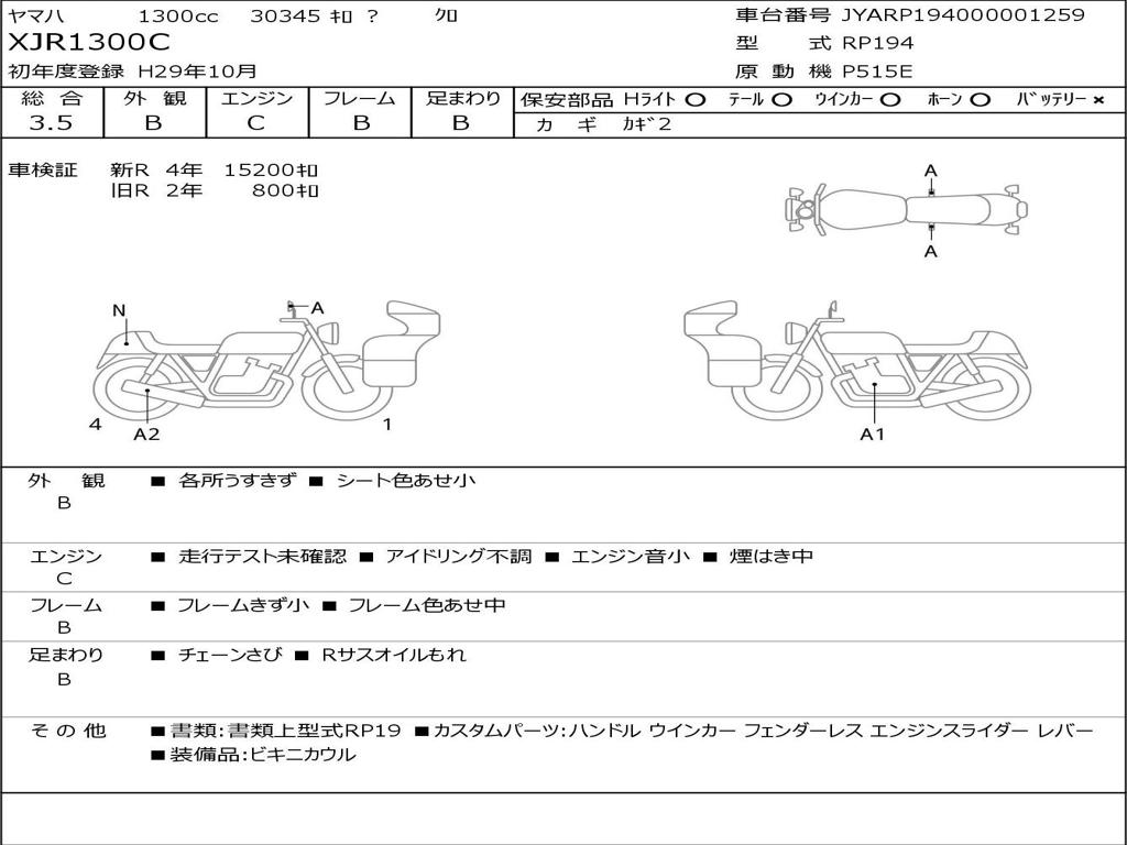 | Номер рамы / VIN | JYARP194000001259 |
