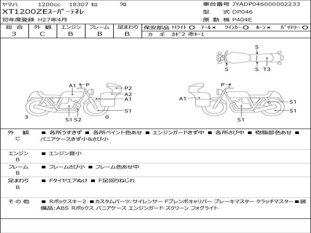 | Номер рамы / VIN | JYADP046000002233 |