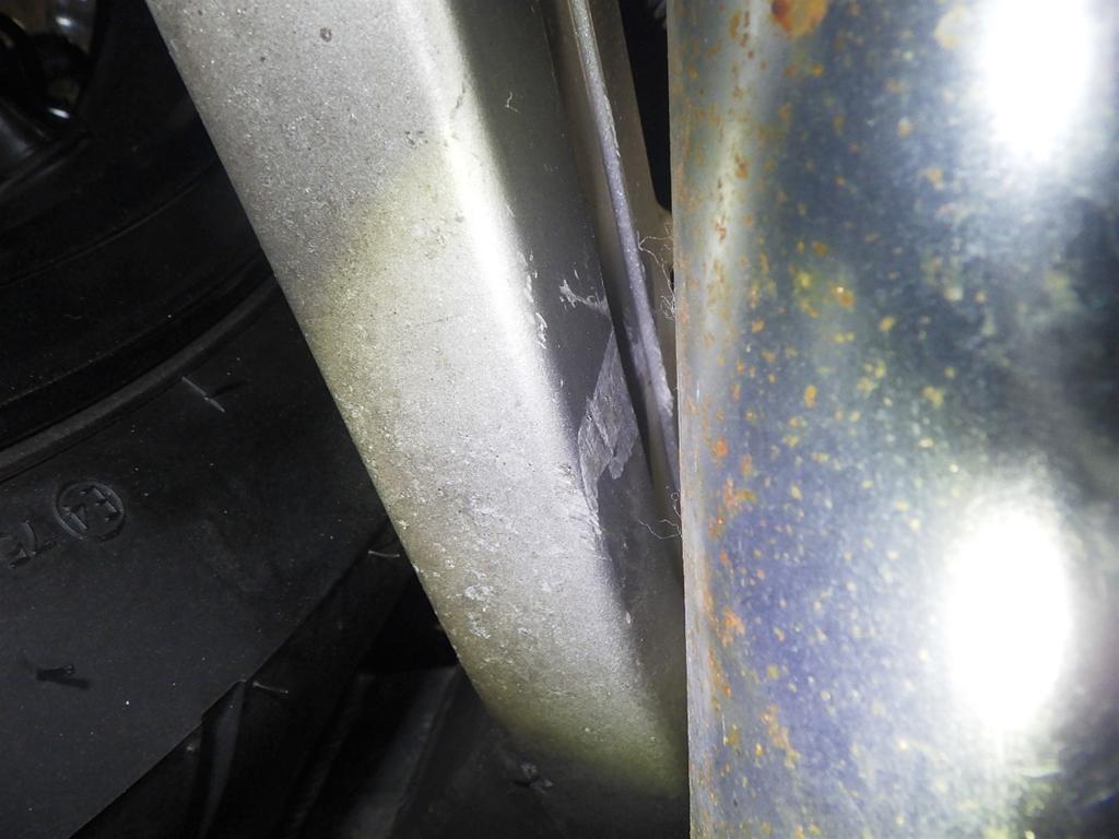 | внешняя часть вилки | царапины <много>, потертость, потек масла |