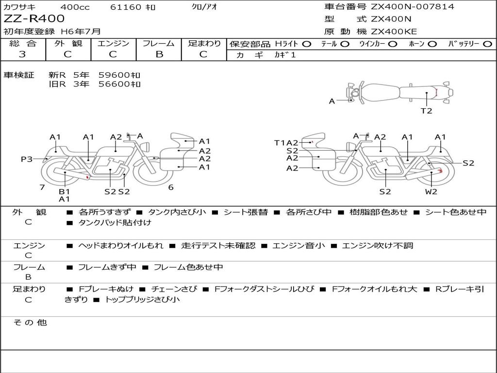 | Номер рамы / VIN | ZX400N-007814 |