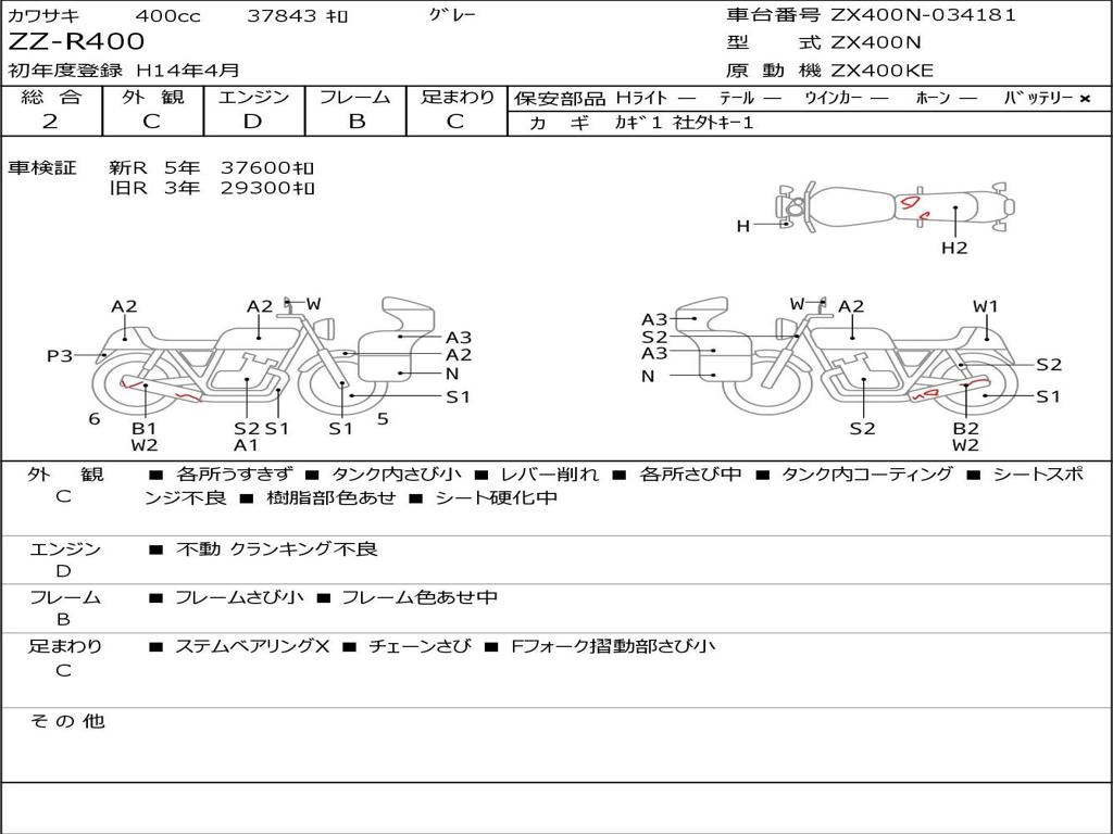 | Номер рамы / VIN | ZX400N-034181 |
