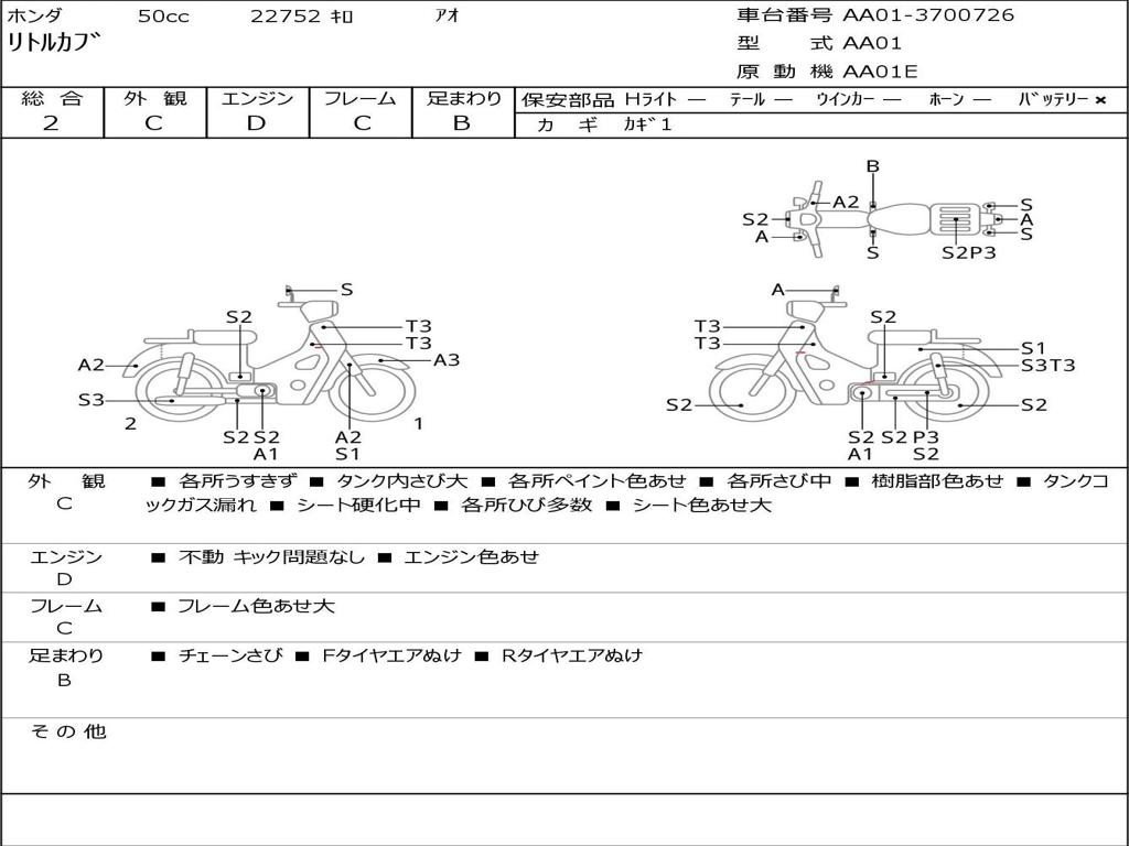 | Номер рамы / VIN | AA01-3700726 |