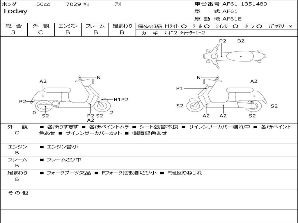 | Номер рамы / VIN | AF61-1351489 |