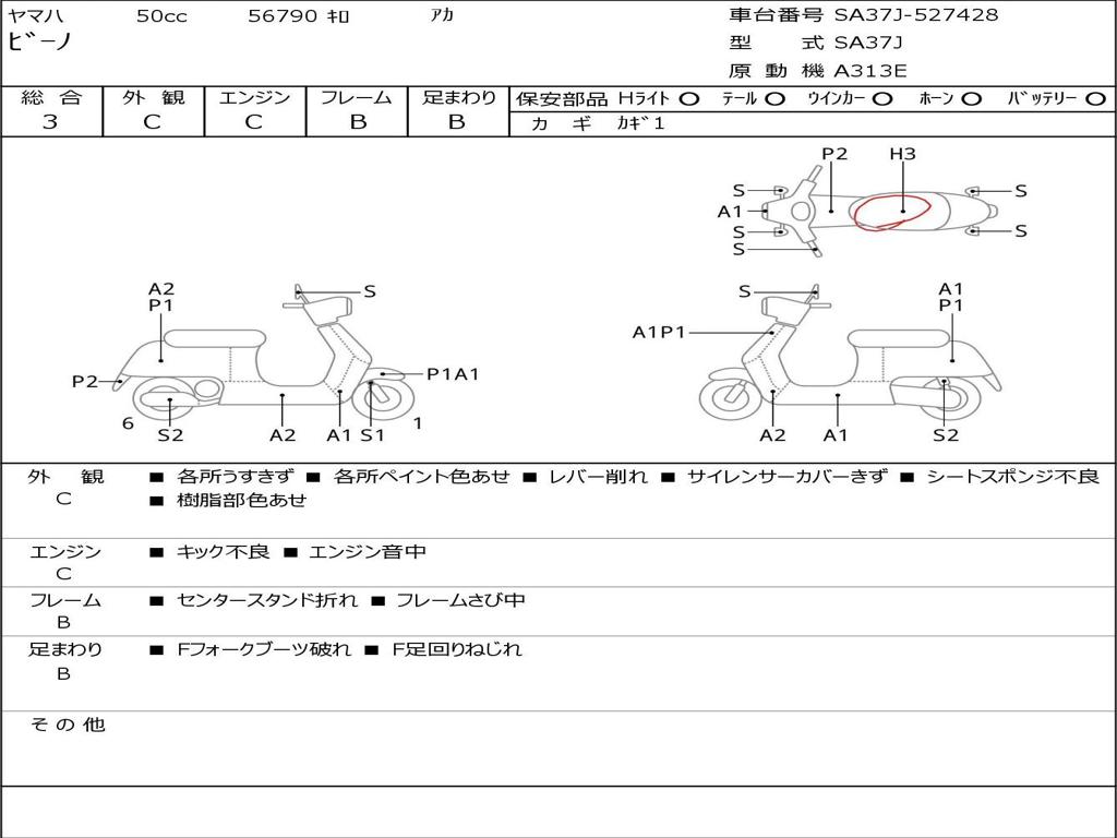 | Номер рамы / VIN | SA37J-527428 |