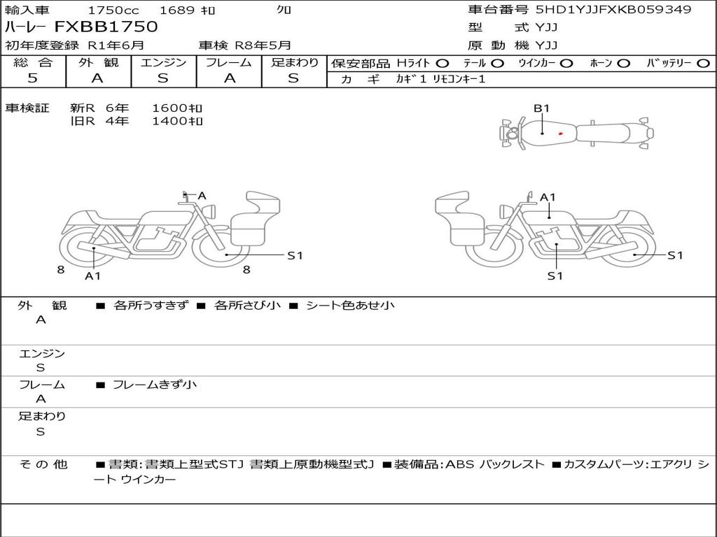 | Номер рамы / VIN | 5HD1YJJFXKB059349 |