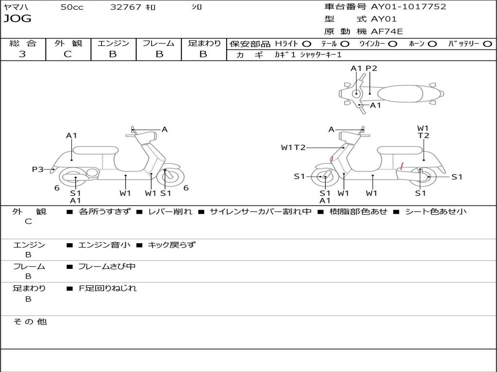 | Номер рамы / VIN | AY01-1017752 |