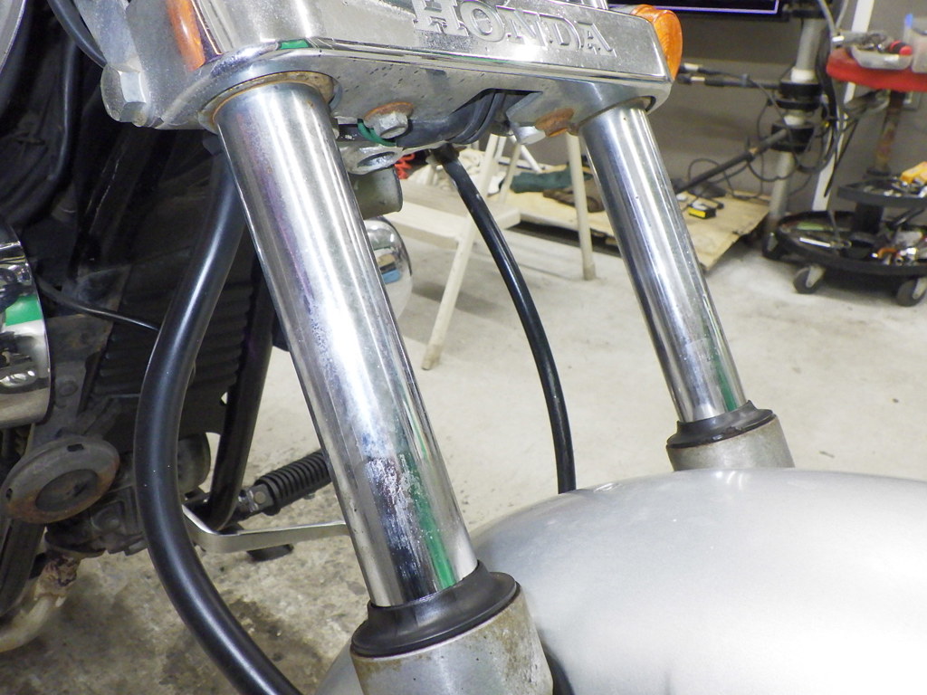 | внешняя часть вилки | следы коррозии <много>, потек масла |