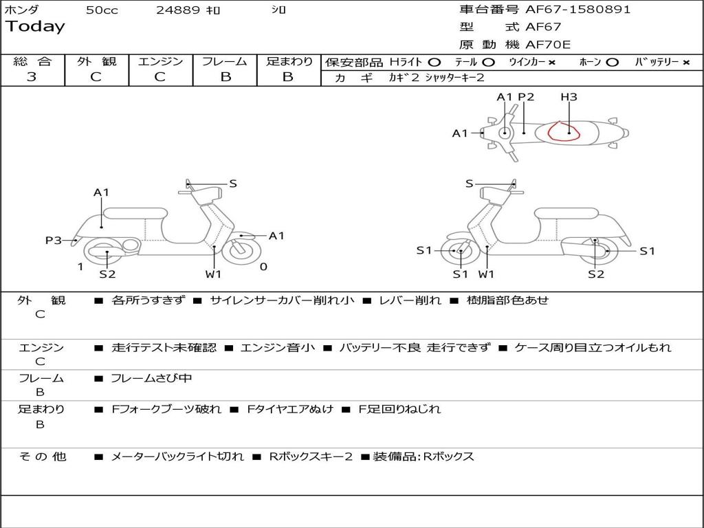| Номер рамы / VIN | AF67-1580891 |