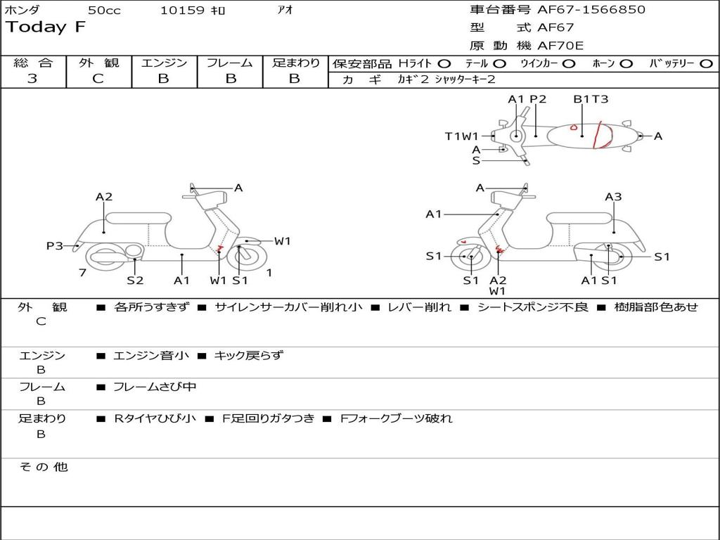 | Номер рамы / VIN | AF67-1566850 |