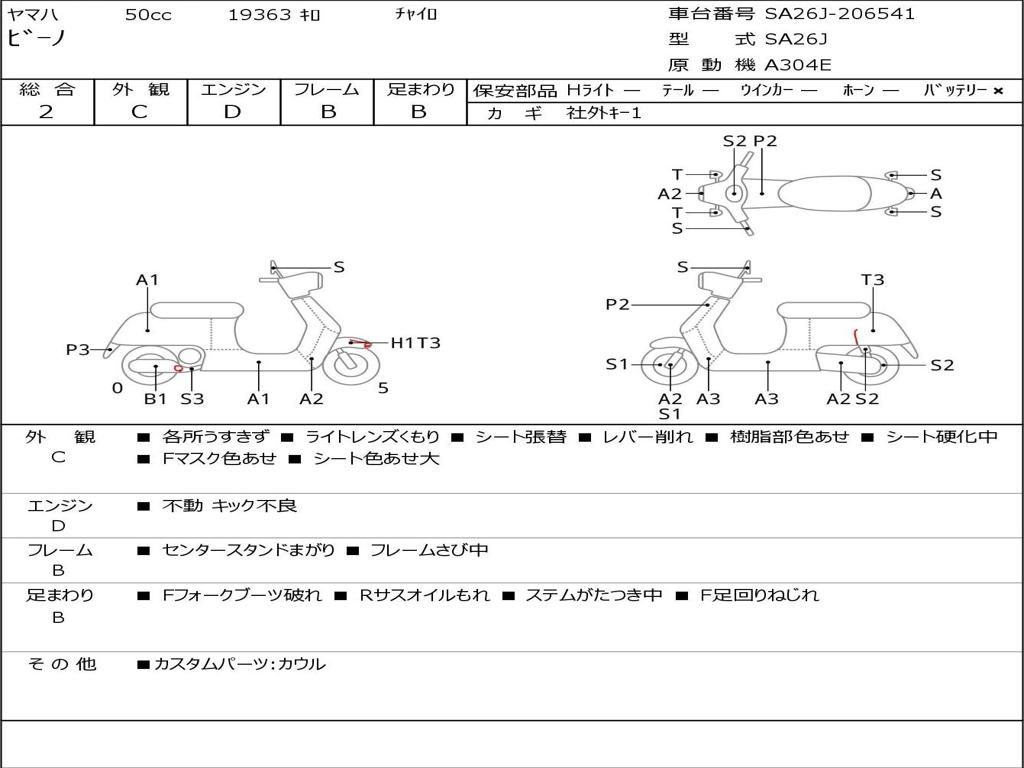 | Номер рамы / VIN | SA26J-206541 |