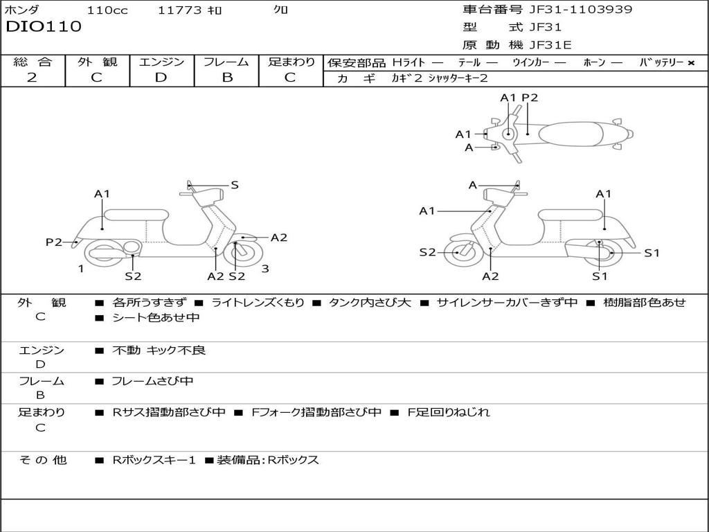 | Номер рамы / VIN | JF31-1103939 |