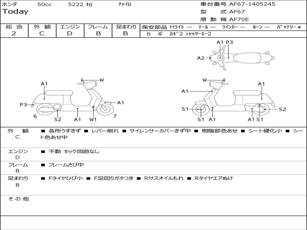 | Номер рамы / VIN | AF67-1405245 |