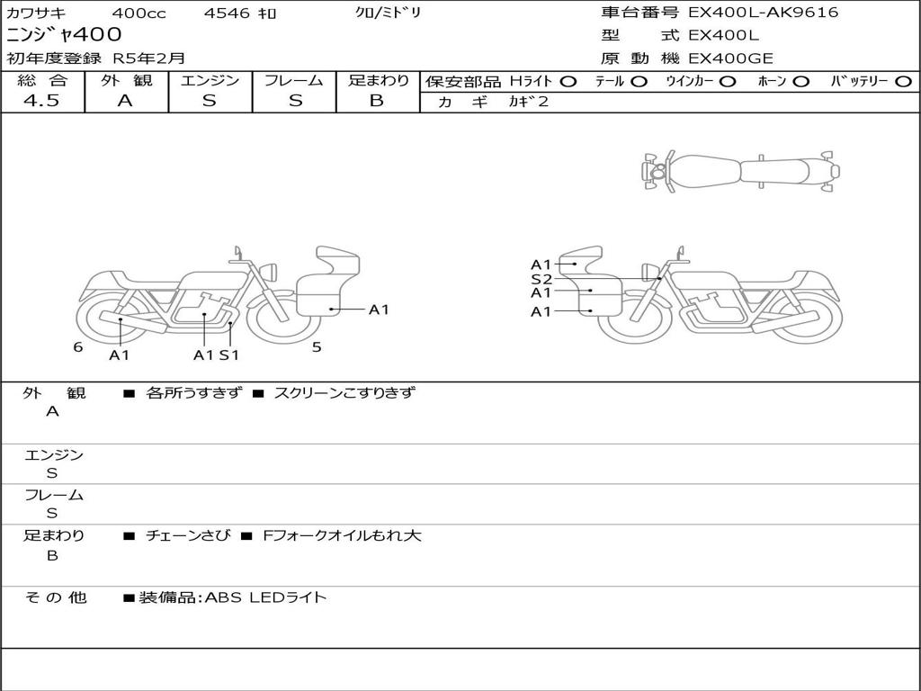 | Номер рамы / VIN | EX400L-AK9616 |