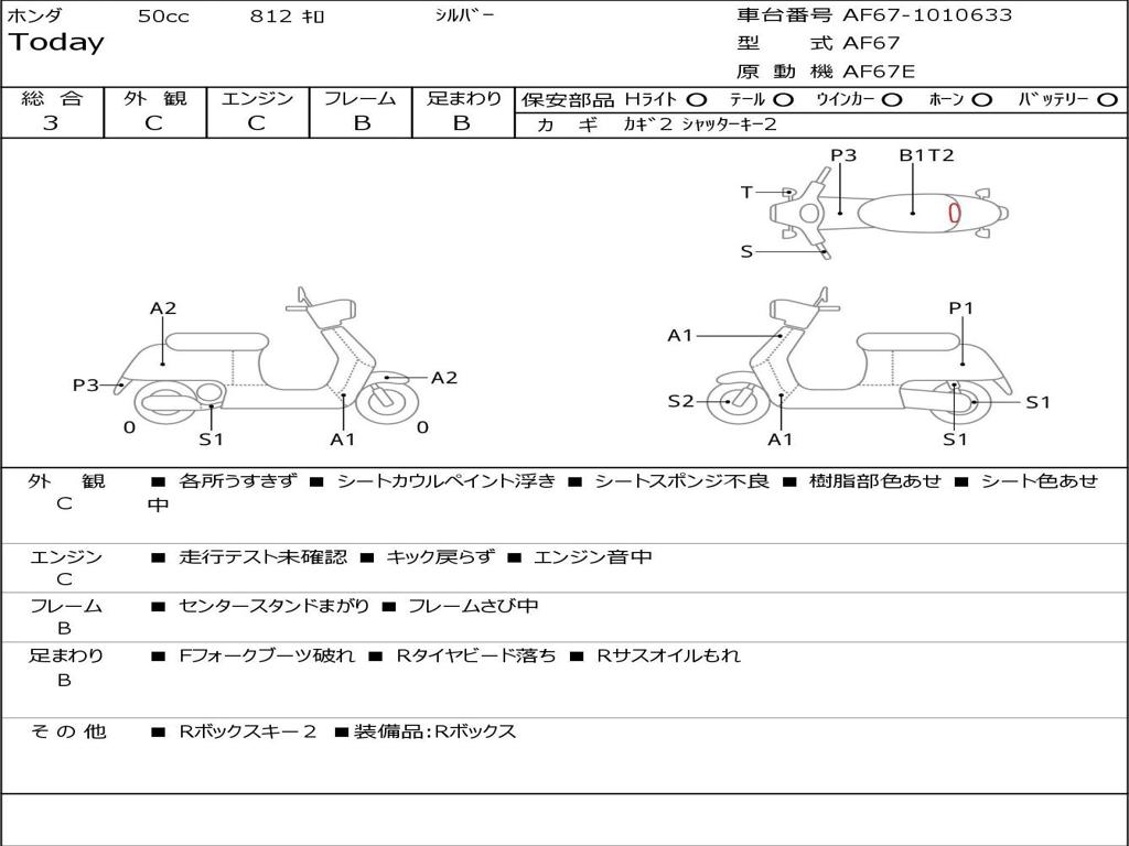| Номер рамы / VIN | AF67-1010633 |