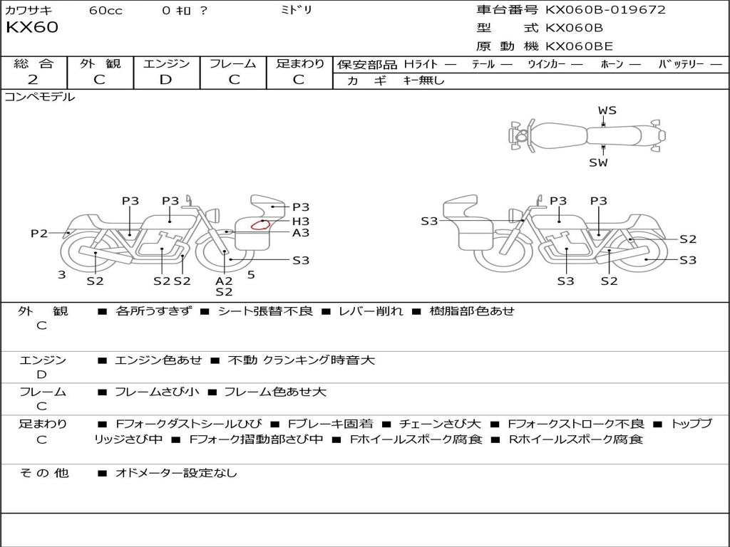 | Номер рамы / VIN | KX060B-019672 |