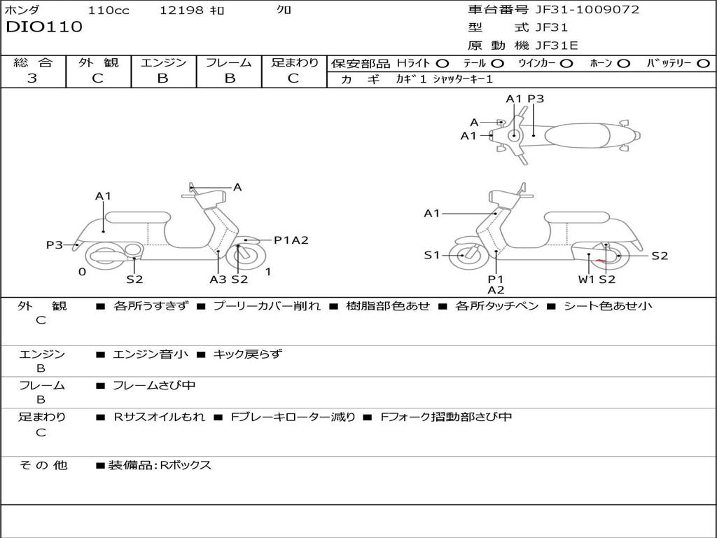 | Номер рамы / VIN | JF31-1009072 |