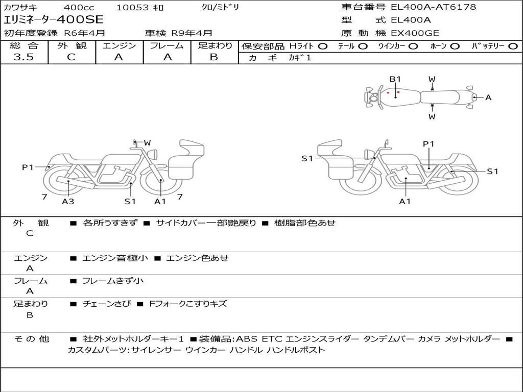 | Номер рамы / VIN | EL400A-AT6178 |