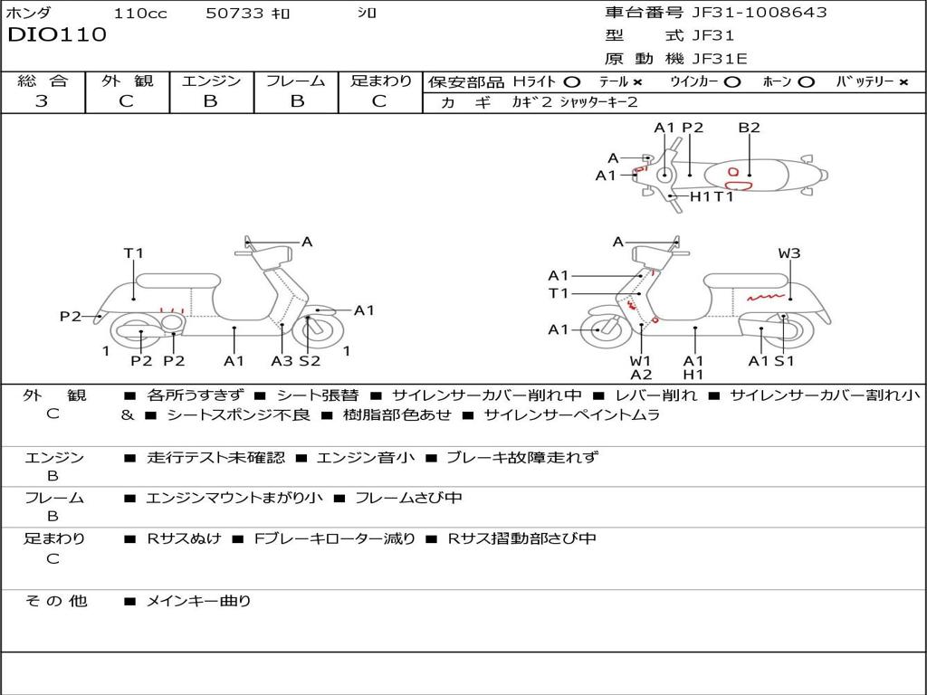 | Номер рамы / VIN | JF31-1008643 |