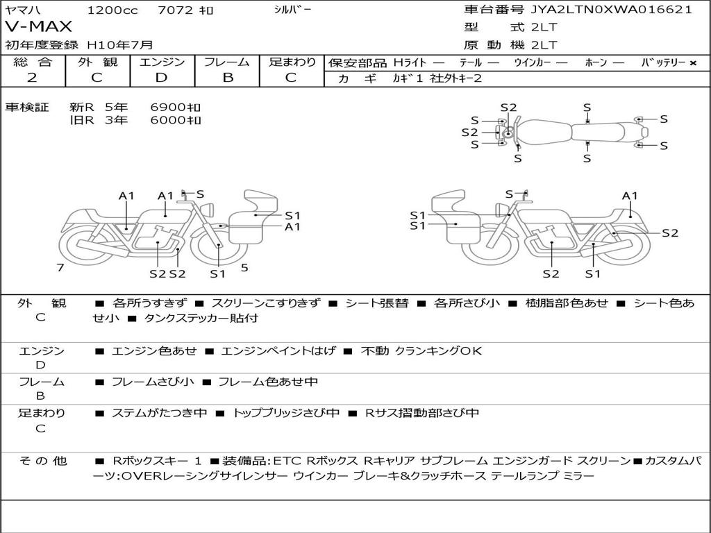 | Номер рамы / VIN | JYA2LTN0XWA016621 |