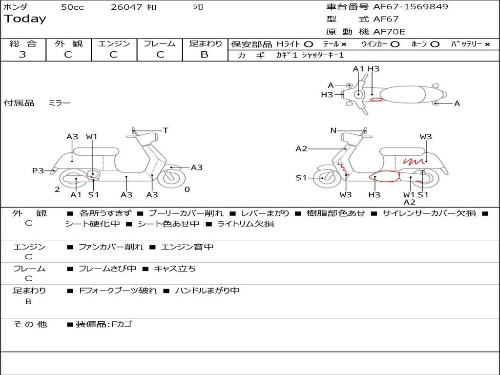 | Номер рамы / VIN | AF67-1569849 |