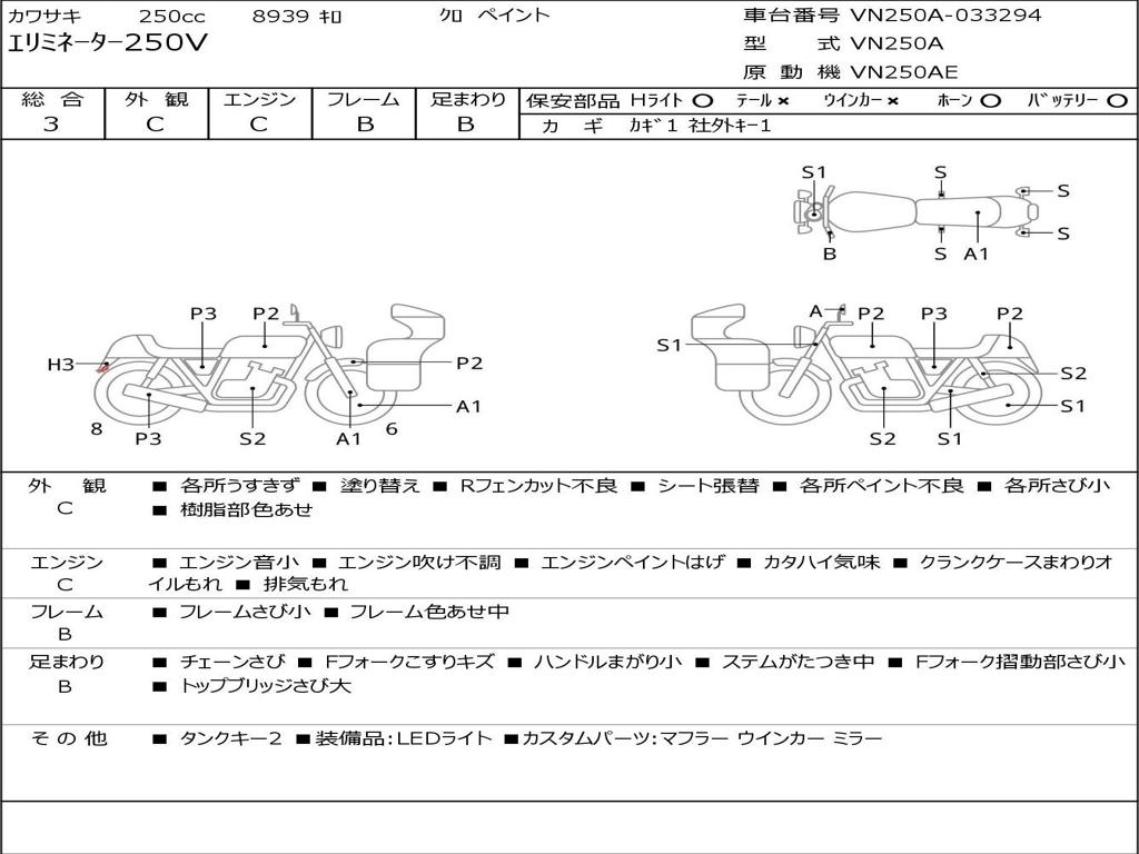 | Номер рамы / VIN | VN250A-033294 |