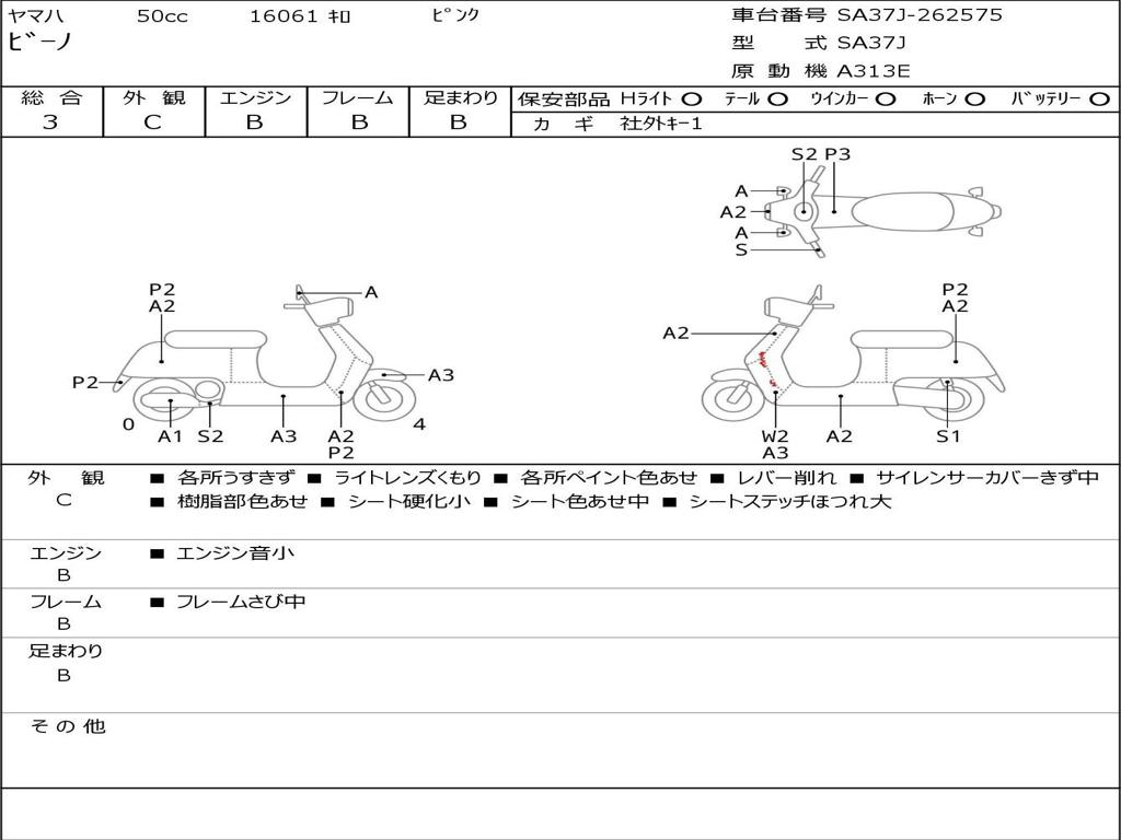 | Номер рамы / VIN | SA37J-262575 |