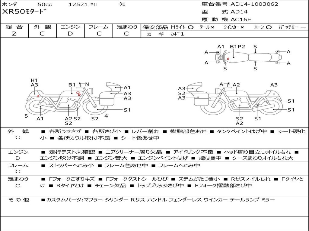 | Номер рамы / VIN | AD14-1003062 |