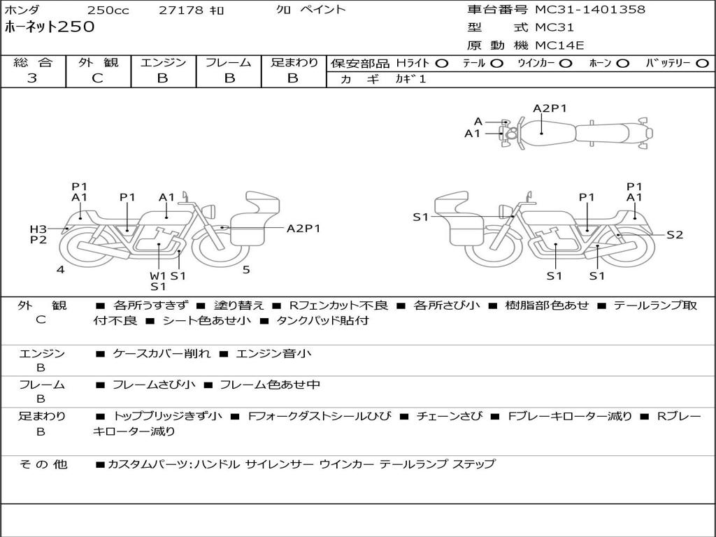 | Номер рамы / VIN | MC31-1401358 |